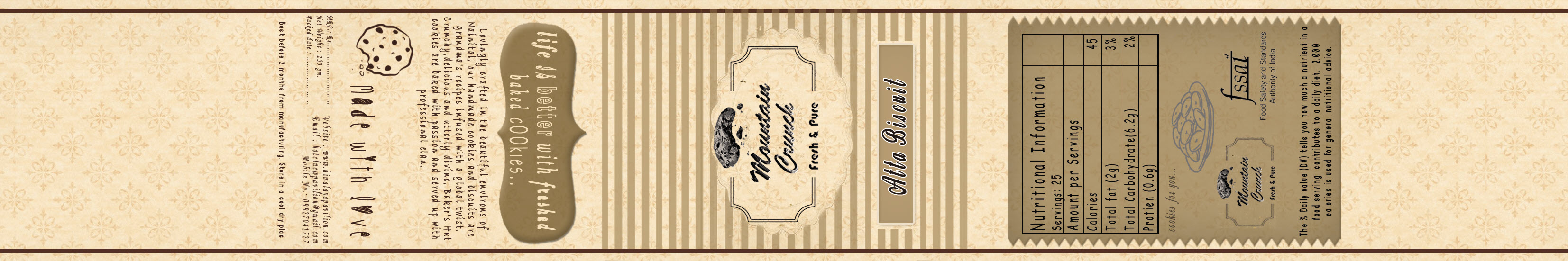 The above is a example of a cookie brand from Nanital where we worked to explore the positioning of this product. The projections are fresh, handmade and authentic premium cookies with associations to Nainital and hills. Evething from logo to packaging sticker design is conceptualized and developed by designers at CrossRoadsBrands.